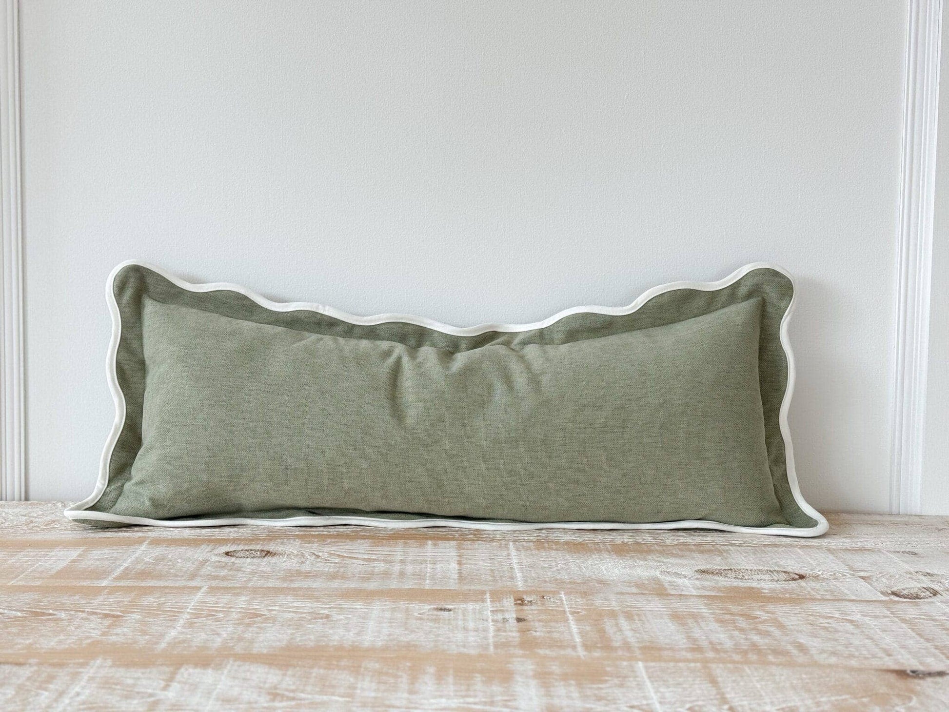 Chloe Sage Bolster Scalloped Edge Cushion Cover 80x30