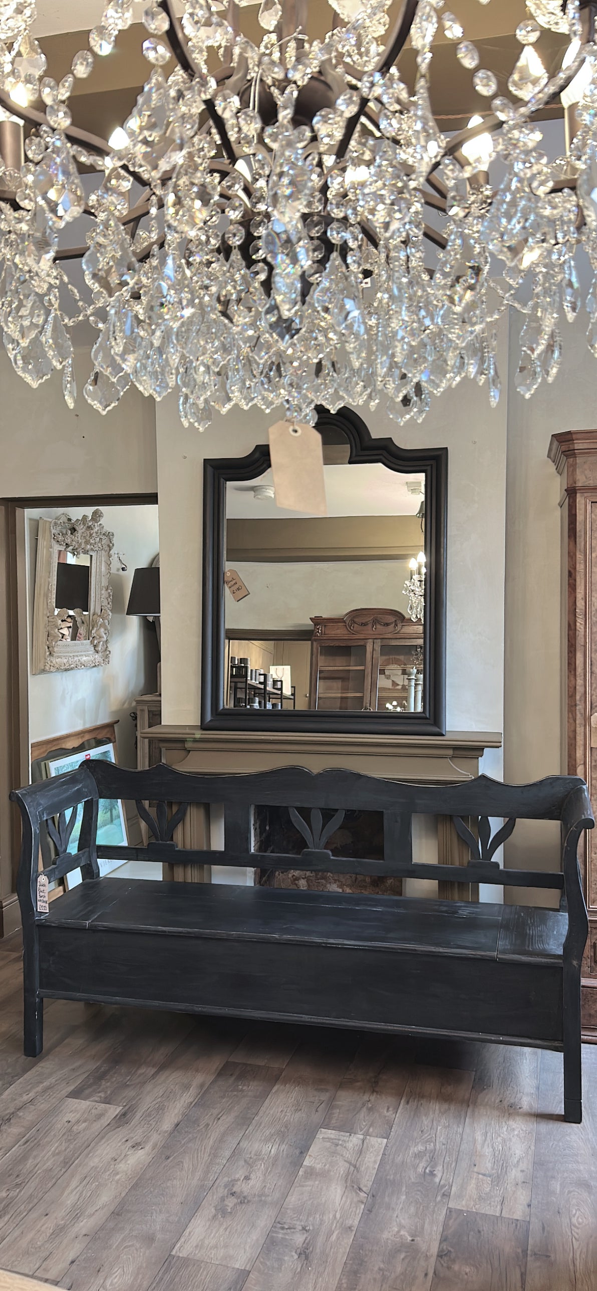 Dutch pine painted long bench with storage
