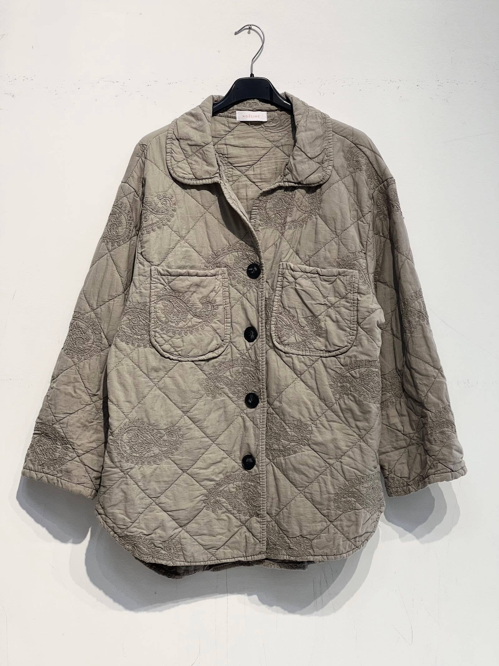 Embroidered quilted jacket with cashmere pattern, button closure. One size fits from 36 to 44
