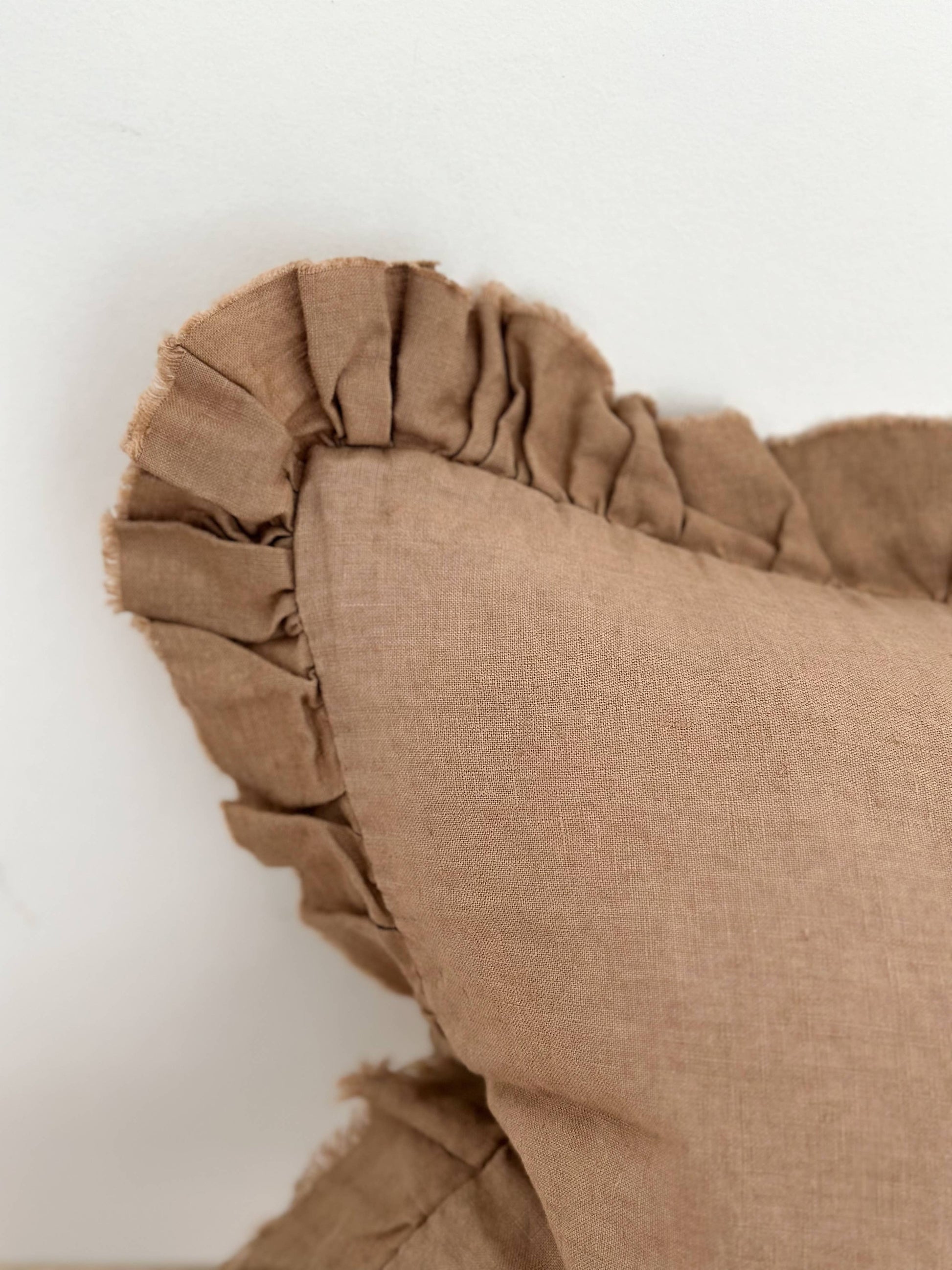 Hallie Ruffled Linen Cushion Cover 50x30 – Brown
