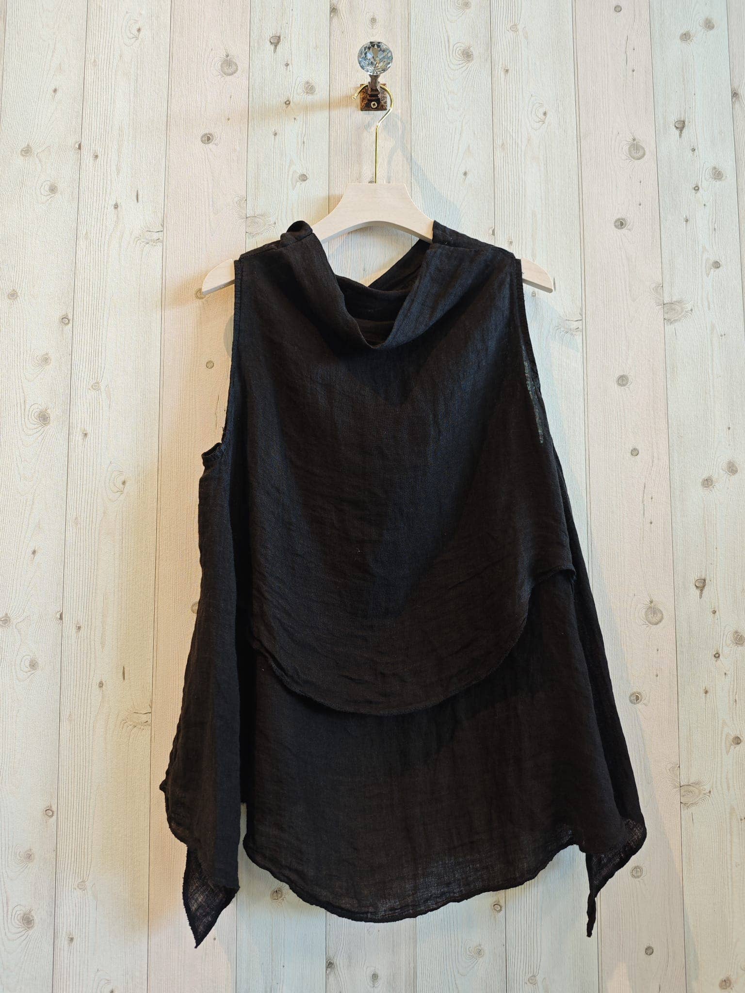 100% LINEN BLOUSE: Black